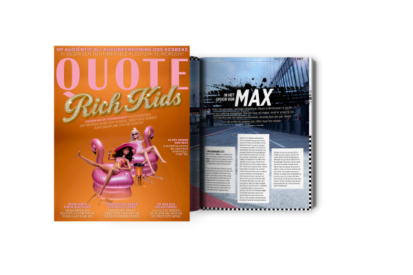 In de Top 100 Jonge Selfmade Miljonairs die Quote jaarlijks samenstelt zijn erfgenamen uitgesloten. Wie geboren is met een zilveren lepel in de mond telt niet mee: in deze lijst staan louter ondernemers onder de veertig die eigenhandig een vermogen van minimaal € 17 miljoen hebben opgebouwd. Des te leuker is het om in het julinummer van Quote die zilveren lepels – de rich kids – wél in de spotlight te zetten. Zij hebben het stempel extreem verwend te zijn, een beeld dat ze zelf versterken door hun luxeleventje uitvoerig te showen op social media. We maakten een rondgang langs de rijkeluiskinderen en hun ouders. ‘Onze dochters stoppen gewoon hun bankpas in de muur en dan komt er geld uit. Voor hen is dat net zo normaal als dat er water uit de kraan komt’, aldus Angela de Rooij, de vrouw van Quote 500-lid Jasper de Rooij.