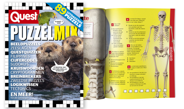 Ben je geen grasfan? Gelukkig zijn er ook quizzen over Vincent van Gogh, ons skelet, bruggen en kannibalen. En ja, de beeldpuzzels zijn er ook weer, de vreemde eenden, logikwissen, Zweedse puzzels, pictokrakers, cijfercodes, zandlopers, et cetera. Zet je hersens maar vast aan.